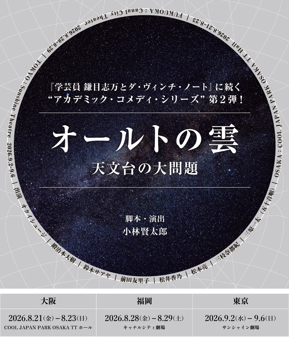 出演者には、小林賢太郎とは旧知のオクイシュージ、小林賢太郎が主宰する「シアター・コントロニカ」常連の松本亮、舞台『学芸員 鎌目志万とダ・ヴィンチ・ノート』より前田友里子、三枝奈都紀、そして2025年9月に実施された全国オーディションにより応募者約1000人の中から選ばれた鍛治本大樹、鈴木サアヤ、松井香乃、三原一太(五十音順)といった個性豊かなキャストが小林賢太郎の世界を彩ります!!