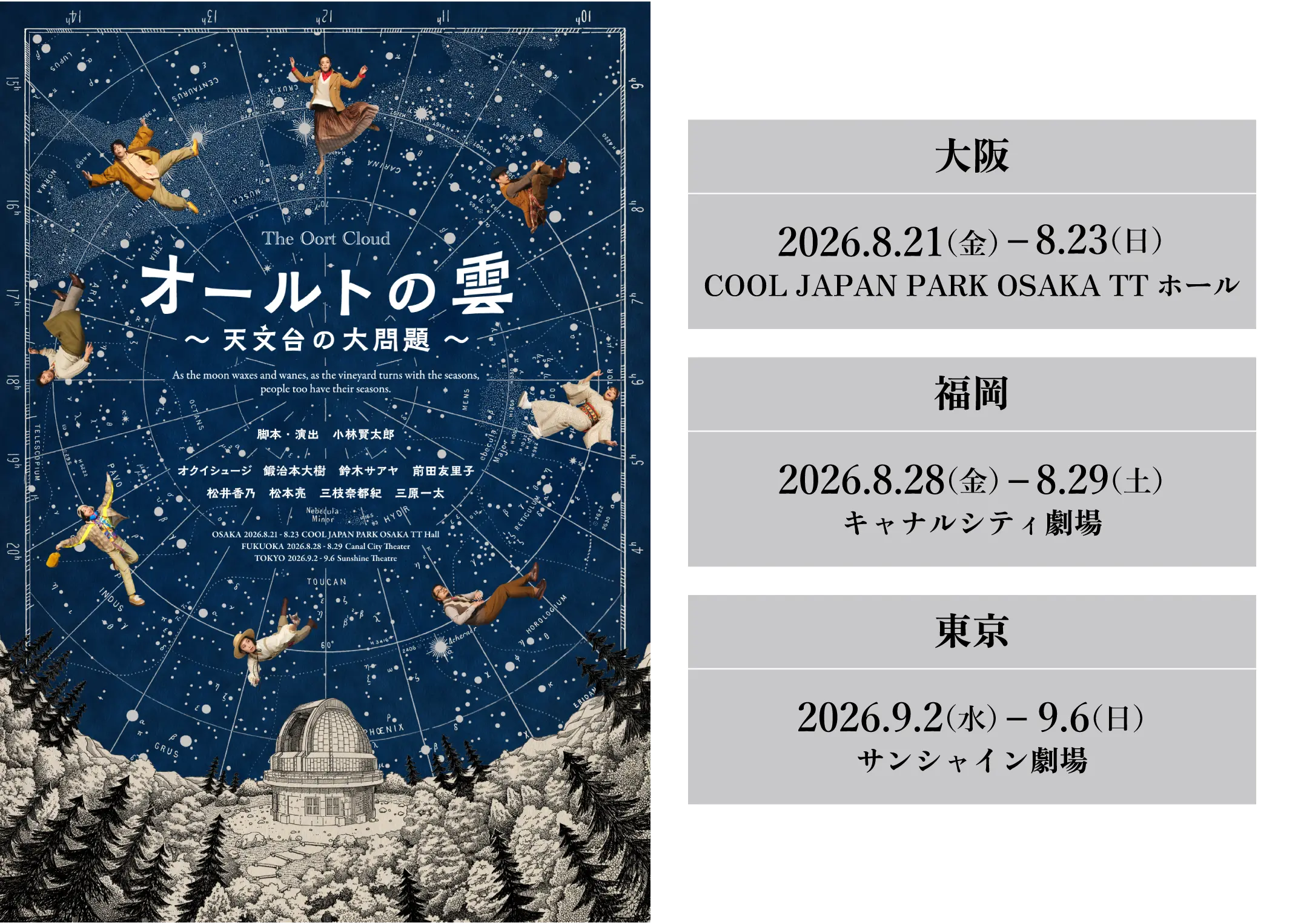 出演者には、小林賢太郎とは旧知のオクイシュージ、小林賢太郎が主宰する「シアター・コントロニカ」常連の松本亮、舞台『学芸員 鎌目志万とダ・ヴィンチ・ノート』より前田友里子、三枝奈都紀、そして2025年9月に実施された全国オーディションにより応募者約1000人の中から選ばれた鍛治本大樹、鈴木サアヤ、松井香乃、三原一太(五十音順)といった個性豊かなキャストが小林賢太郎の世界を彩ります!!